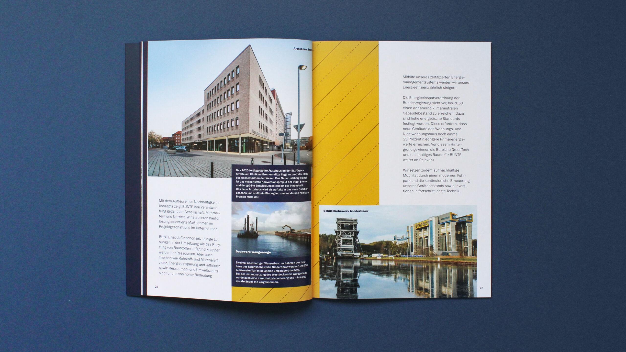 „Tradition baut Zukunft“, so der Titel des Geschäftsberichts 2020 der BUNTE Gruppe. Auf drei großen Themenfeldern – Innovation, Digitalisierung, Nachhaltigkeit – zeigt der Bericht, wie das bald 150 Jahre alte Unternehmen auf dem Fundament von Erfahrung und Tradition seinen Erfolg stetig ausbaut. Journalistisch und sachkundig erzählt, offen und dynamisch gestaltet, ist der Report nicht nur wichtiges Mittel zur Außendarstellung der BUNTE Gruppe, sondern wird auch intern an alle Mitarbeiterinnen und Mitarbeiter des Unternehmens verteilt.
